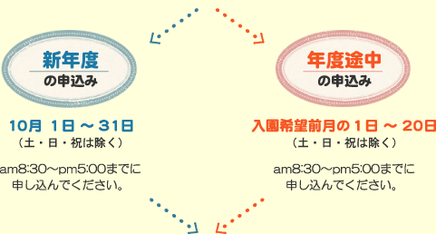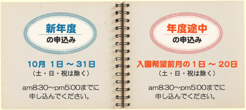 就労状況、お子さんの年齢等に基づき、岐阜市 子ども保育課で「子ども子育て支援支給認定」を受けていただくことで、入園が可能になります。
